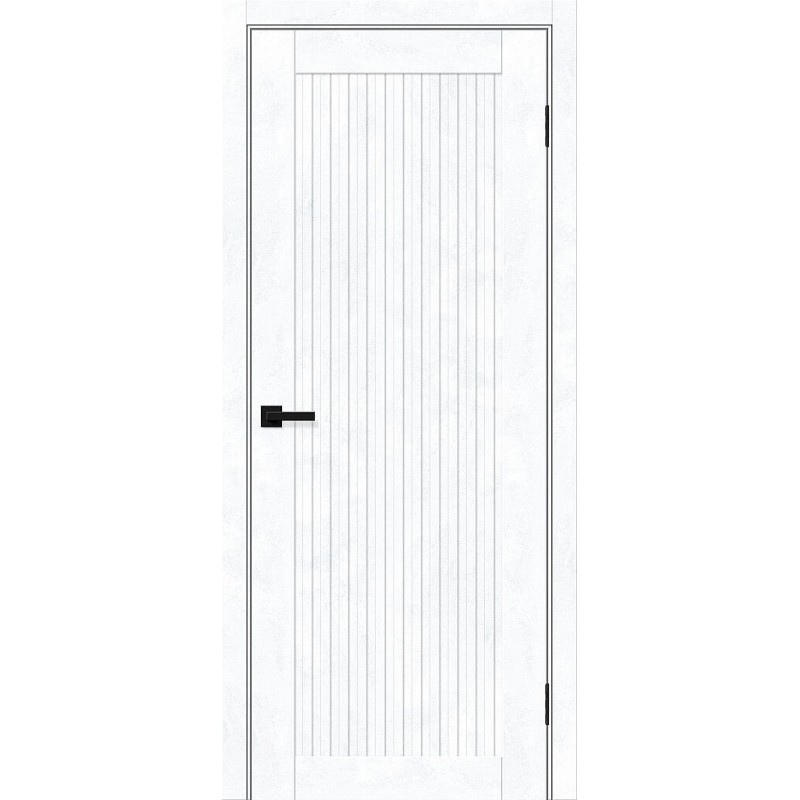 Межкомнатная глухая дверь рамочной конструкции. Особенности: Композитный каркас двери со стабилизирующим слоем LVL или соснового бруса облицован плитами высокой плотности, без пустот. Дверь проклеена в местах соединения деталей, что обеспечивает долгий срок службы. Бескромочная технология производства. Для отделки всех лицевых поверхностей применяется влагостойкий PUR-клей необратимой полимеризации. Детали зафиксированы при помощи крепежа из закаленной стали. Отделка: Эко Шпон — структурный материал с защитным лаком, отличается повышенной стойкостью к повреждениям (в сравнении со схожими декоративными материалами). Репродукция натуральных материалов. Декор: Snow Art - со структурой камня, примерно соответствует RAL 9002, матовый (≈ 2,3 GU). Комплектующие: Телескопические погонажные изделия для качественного регулируемого монтажа. Дверная коробка с TPE-уплотнителем для мягкого закрывания. Толщина, мм: 36