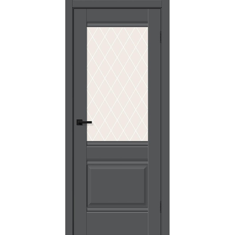 Межкомнатная дверь Прима-3 цвет Stormy Silk, стекло White Сrystal, покрытие ПЭТ, размер 200*80 см.