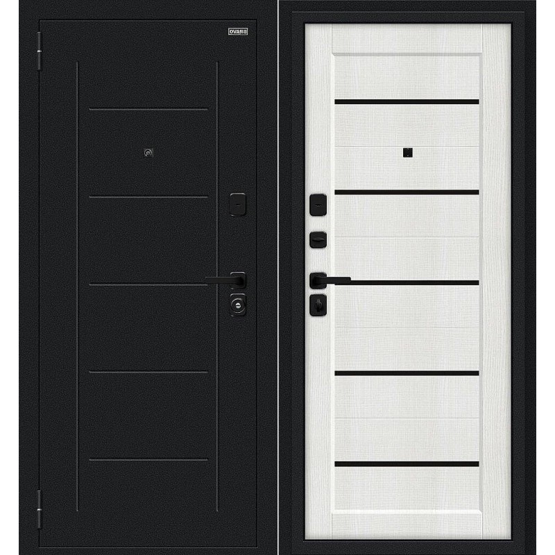 Металлическая входная дверь Борн/SBlack Букле черное/Bianco Melinga 205*86 левая