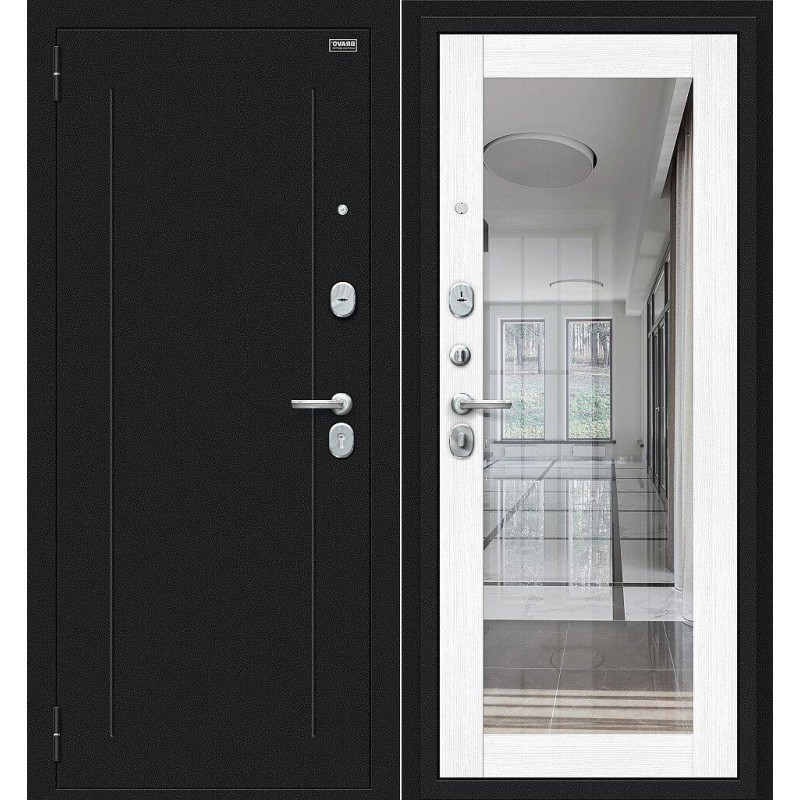 Металлическая входная дверь Флэш Букле черное/Snow Melinga 205*86 левая