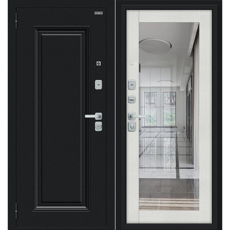 Металлическая входная дверь Флэш МФ/BChrome Букле черное/Bianco Melinga 205*86 левая