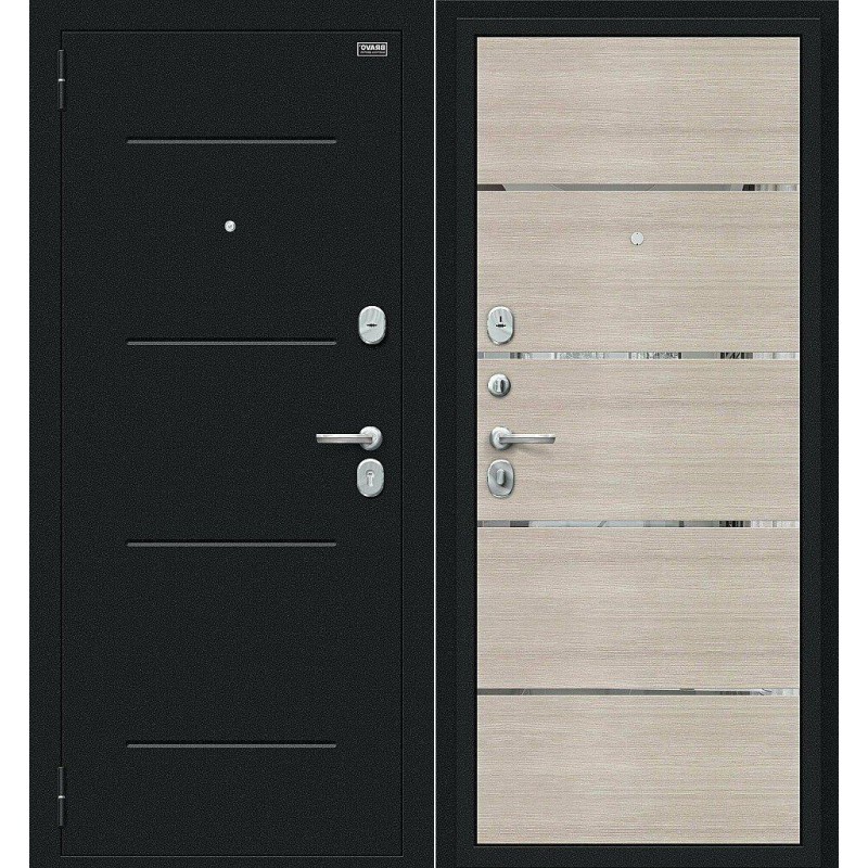 Металлическая входная дверь Лайн Букле черное/Cappuccino Veralinga 205*86 левая