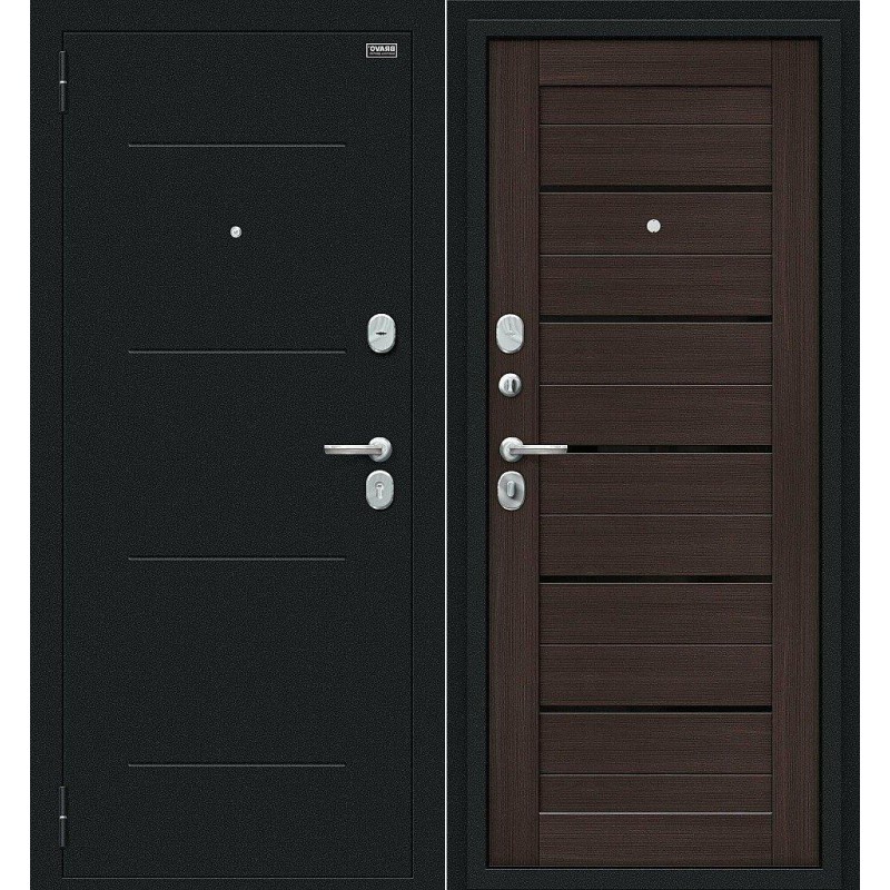 Дверной блок из стали Техно Kale Букле черное/Wenge Veralinga 205*86 левая с открыванием наружу, доступный в право - и левосторонней конфигурации.