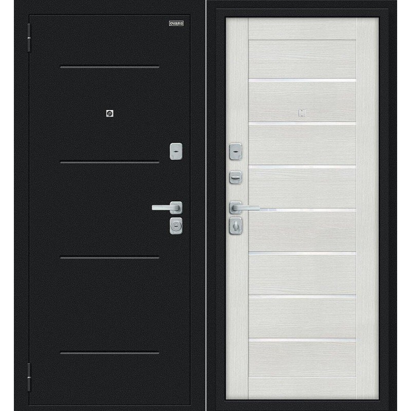 Металлическая входная дверь Техно/BChrome Букле черное/Bianco Melinga 205*86 левая