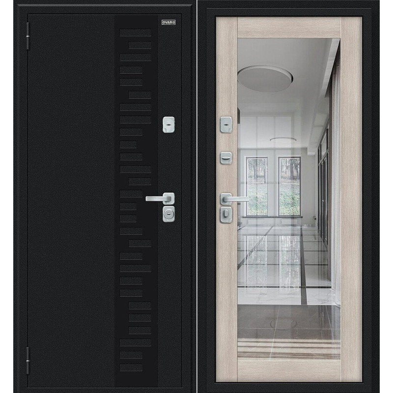 Металлическая входная дверь Thermo Флэш Декор-2 Букле черное/Cappuccino Veralinga 205*86 левая