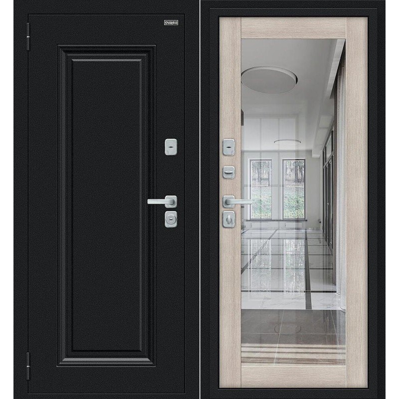 Металлическая входная дверь Thermo Флэш МФ/BChrome Декор-2 Букле черное/Cappuccino Melinga 205*86 левая