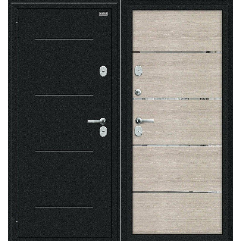 Металлическая входная дверь Thermo Лайн Букле черное/Cappuccino Veralinga 205*86 левая