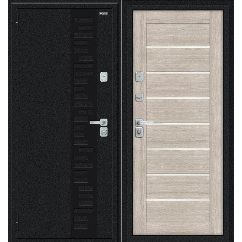 Металлическая входная дверь Thermo Техно Декор-2/BChrome Букле черное/Cappuccino Melinga 205*86 левая