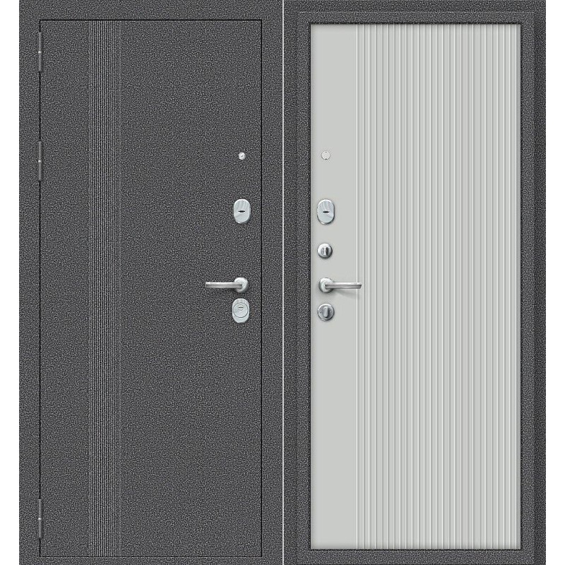 Металлическая входная дверь Тайга-9 Вертикаль Антик Серебряный/Серый 205*86 левая