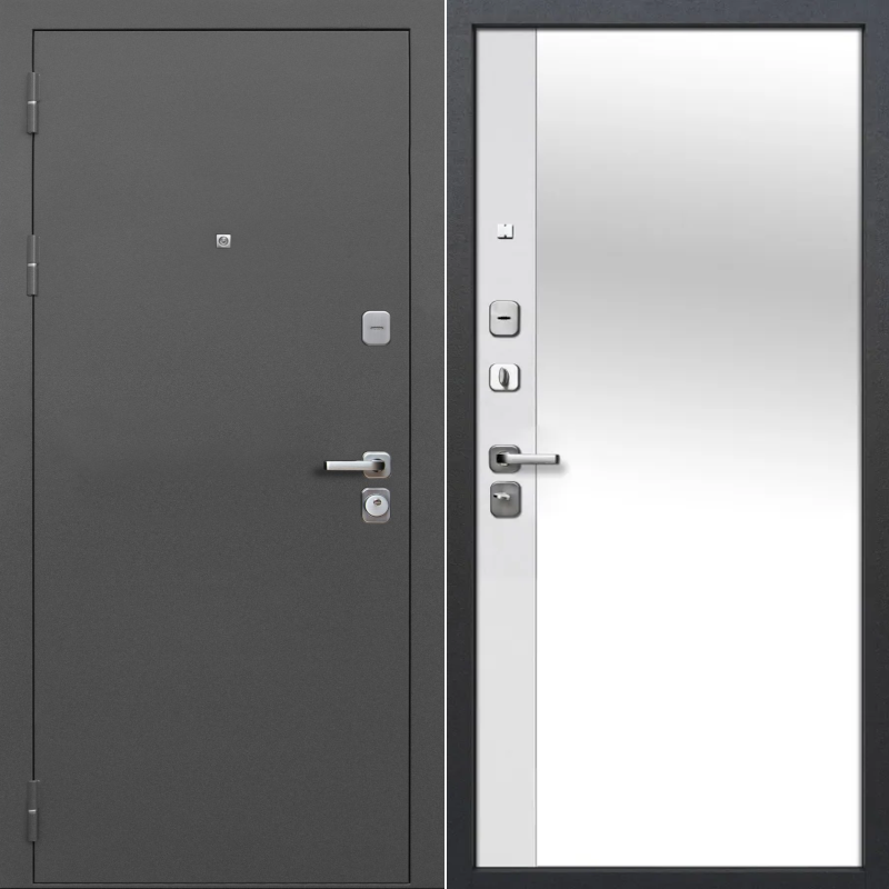 Входная дверь 9 cм Зеркало Серебро / Эмалит белый 205*86 левая