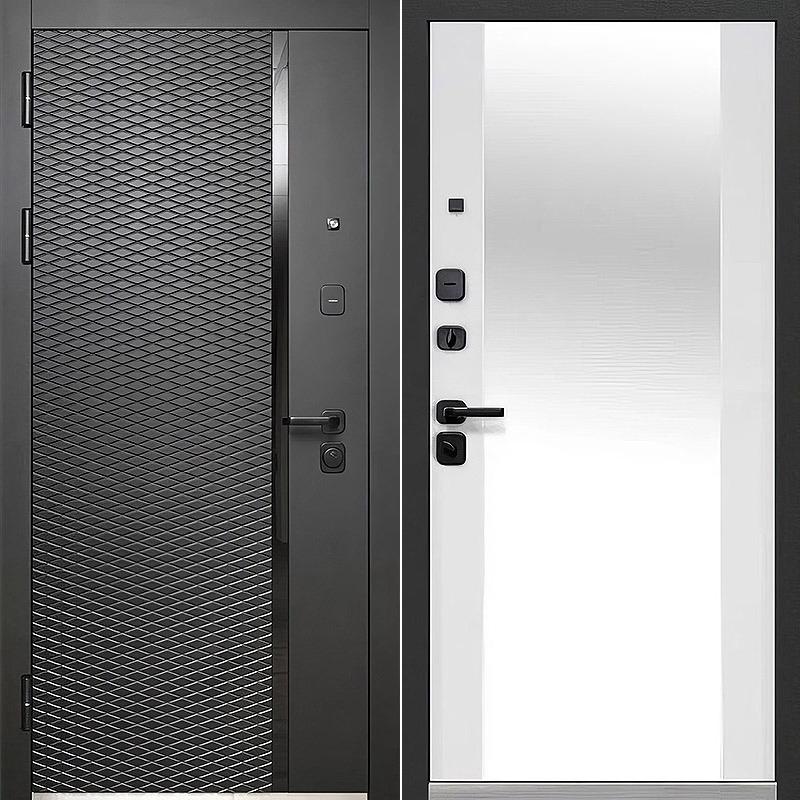 Металлическая Входная дверь Luxor 2МДФ Ромбы Вертикаль Зеркало Антрацит софт / Эмалит белый 205*86 левая